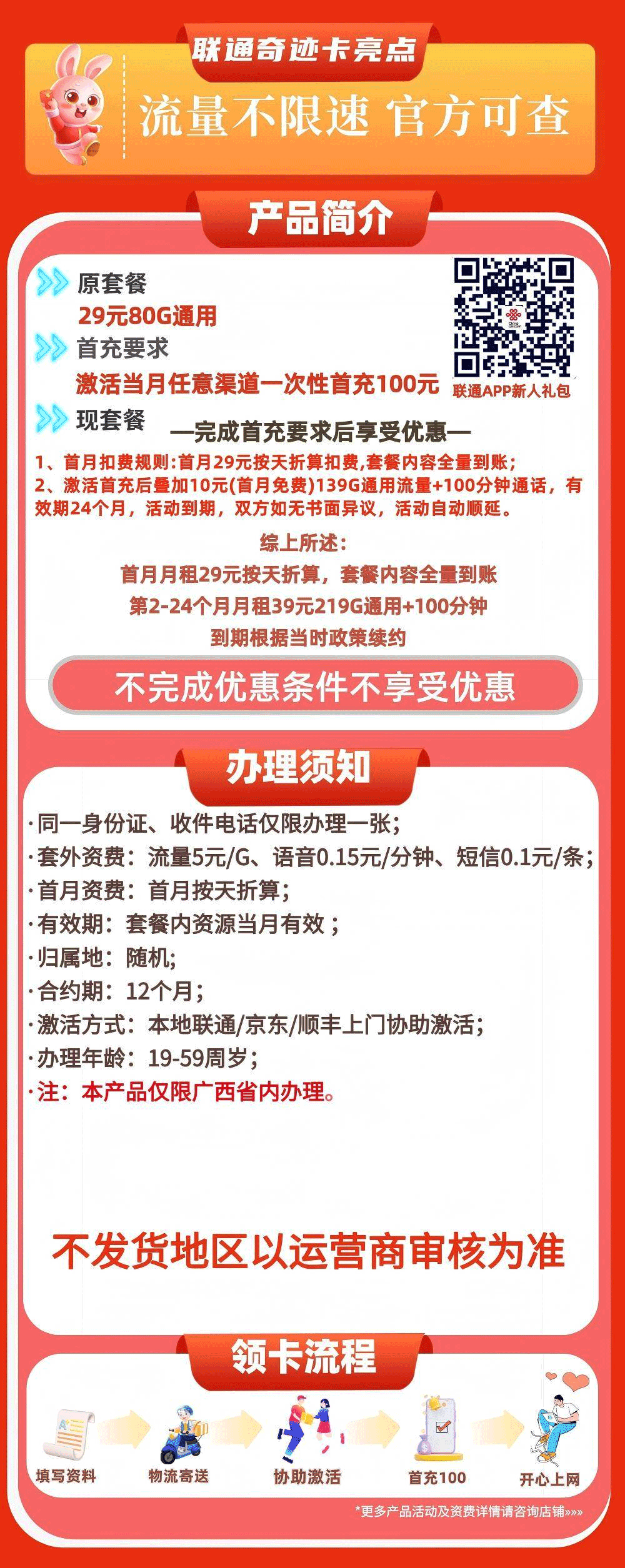 广西联通卡39元月享219G+100分钟【只发广西】
